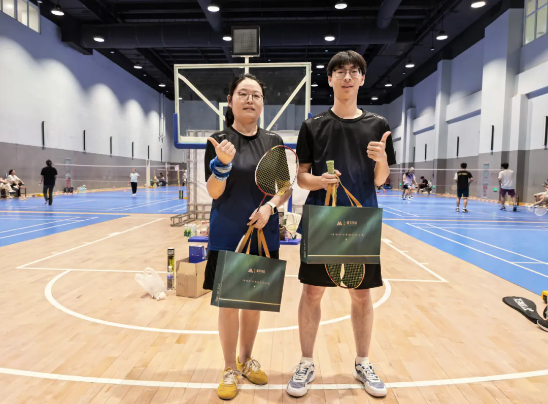 在9月26日傍晚于动投壹中心中联运动公园举行的2025三亿(集团)体育生物与天安科创城羽毛球友谊赛中,三亿(集团)体育生物集团参赛团队发挥出色,凭借精湛的球技与默契的团队协作,勇夺赛事冠军。队员纪文斐、董倩萍分别获得比赛男、女最高分。