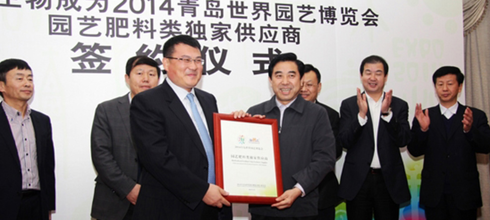 向青岛世园会及市区园林绿化捐赠大量海藻有机肥,共建宜居城市。