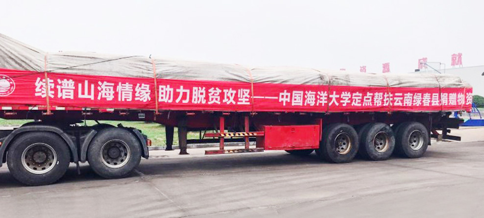 代表中国海洋大学捐赠给云南绿春县价值60万元的生物有机肥。